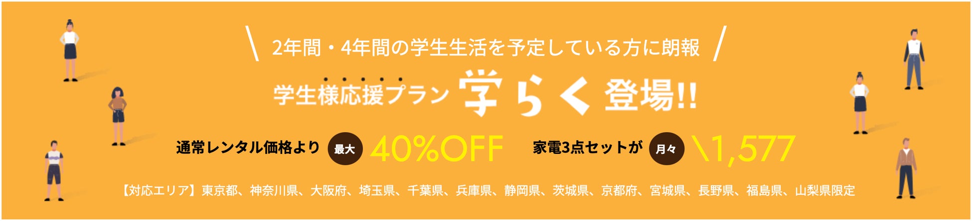 就職や転勤などにももちろんおすすめですが、学生さんの一人暮らしに特に推したいレンタルサービスです。